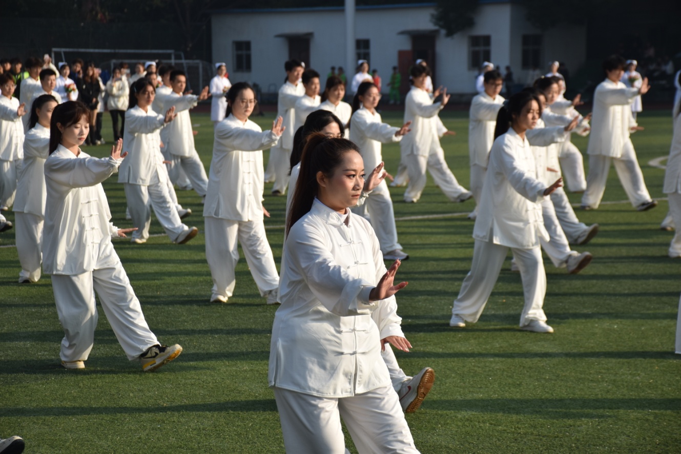 开幕式结束后,一场精彩纷呈的文艺汇演将现场氛围推向高潮。活力四射的开场歌舞《卡拉永远OK》瞬间点燃全场热情;气势磅礴的舞龙表演中,队员们动作矫健,将龙的威严与灵动演绎得淋漓尽致;动感十足的健美操以整齐划一的步伐和舒展有力的动作,挥洒出青春的激情与活力;刚柔并济的太极方阵,在一招一式中传递出中华传统文化的深厚底蕴;最后,由中职学子带来的节目《踏山河》,以激昂的旋律和坚定的步伐,奏响了青春的强音,也为即将上场的运动健儿们注入热血与力量。