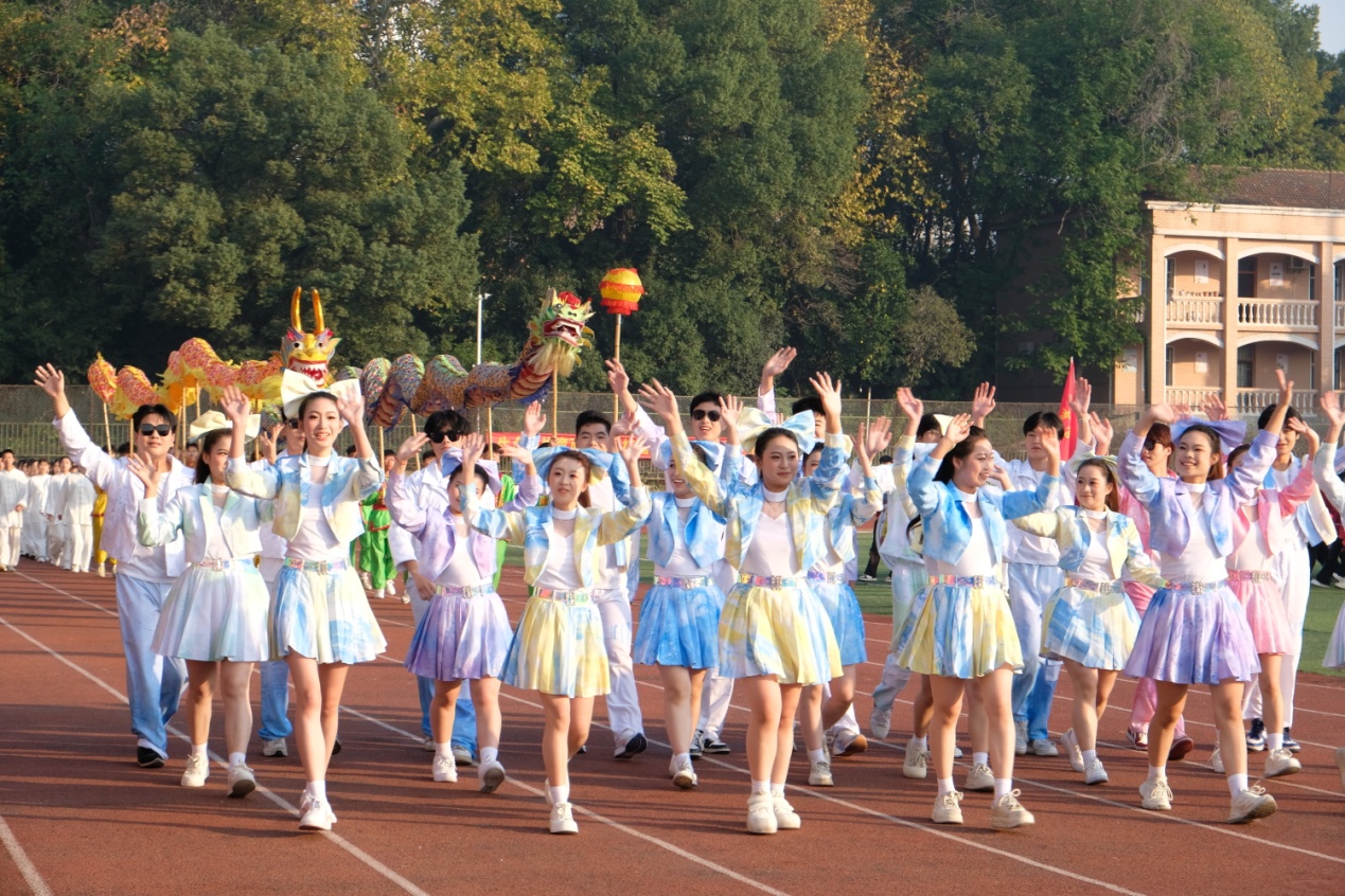 各院(部)方阵巧妙融入专业特色与创意元素,带来一系列富有创意的展示:艺术学院身着民族服饰,展现中华传统之美;航空工程学院则以标准空乘礼仪亮相,彰显专业风范……一个个学科特色鲜明的“创意走秀”,生动呈现了鄂州职大学子朝气蓬勃、创新进取的精神面貌。