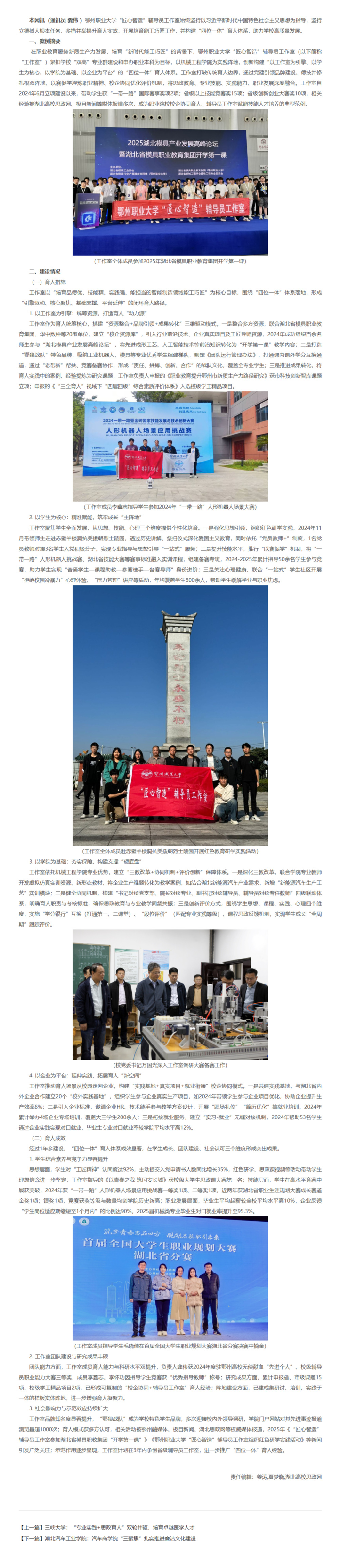 湖北高校思政网——鄂州职业大学:“匠心智造”辅导员工作室构建“四位一体”育人体系 培育新时代能工巧匠