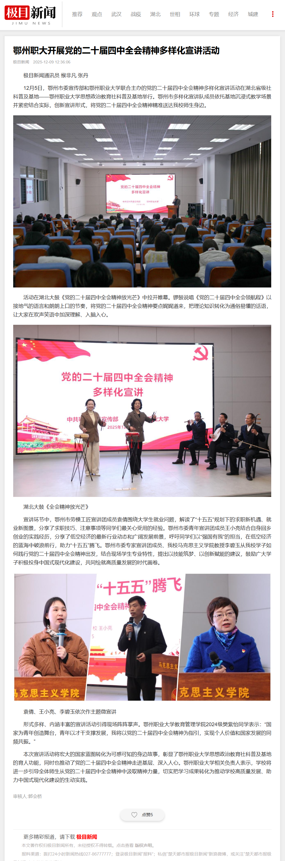 极目新闻——鄂州职大开展党的二十届四中全会精神多样化宣讲活动