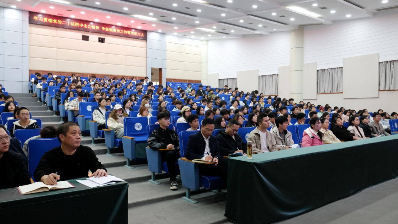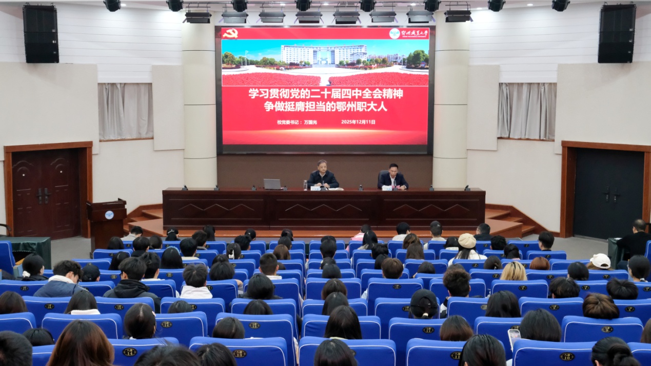 本网讯(记者 何建华)12月11日下午,校图书馆二楼学术报告厅内气氛热烈、座无虚席,一场以“学习贯彻党的二十届四中全会精神 争做挺膺担当的鄂州职大人”为主题的“形势与政策课”在此开讲。活动由副校长陈永红主持。