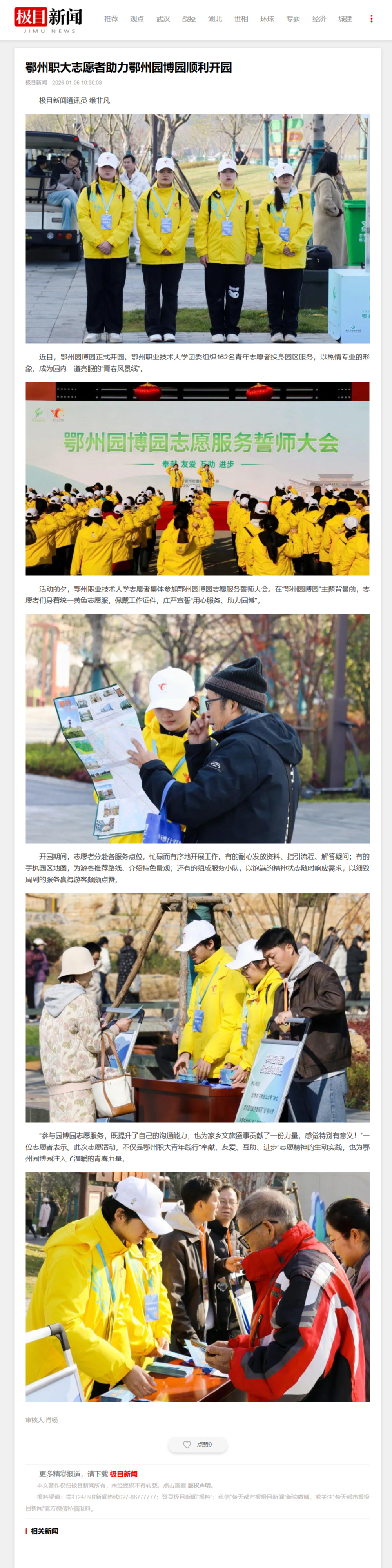 极目新闻——鄂州职大志愿者助力鄂州园博园顺利开园