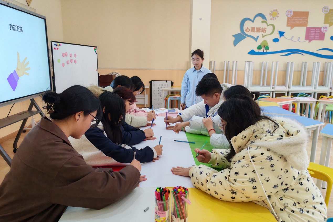 在校内,心理健康教育中心面向学生组建“手机健康使用成长小组”。活动通过创意自我介绍、制定小组公约、“国王与天使”匿名关怀、“我的五指”自我梳理及卡牌分享等多种互动形式,引导学生深入探讨手机使用利弊,提升自我觉察与人际交往能力,依托朋辈支持促进心理成长。