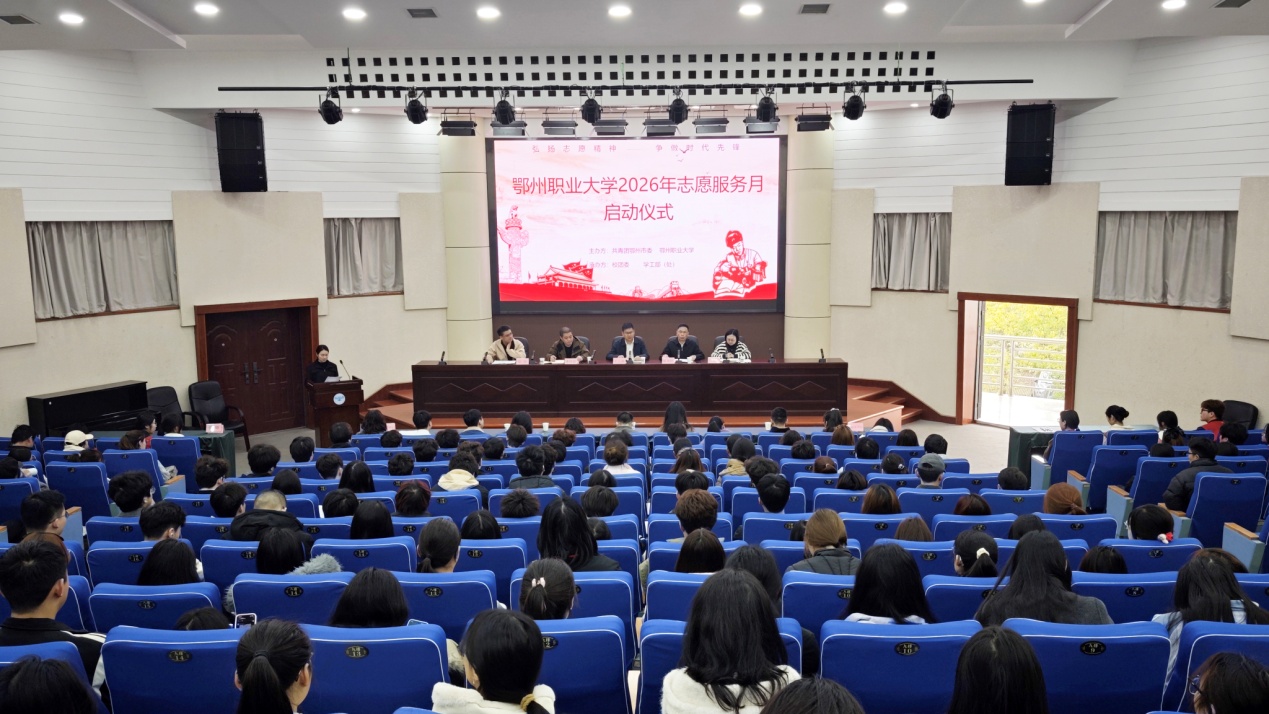 本网讯(通讯员 阳帅)3月25日,我校2026年志愿服务月启动仪式在校图书馆二楼报告厅举行。团市委书记王远顺、副校长陈永红出席活动。学工部、校团委相关负责人,各院(部)团总支书记及200余名志愿者代表参加活动。