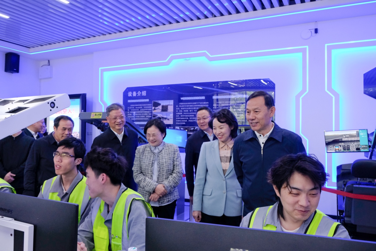 马国强(右二)参观航空工程实训中心