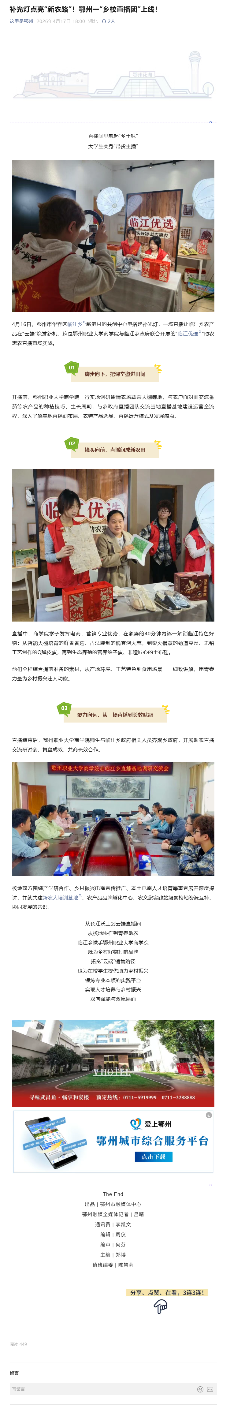 这里是鄂州——补光灯点亮“新农路”!鄂州一“乡校直播团”上线!