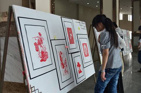 (本网讯)2017年10月1日至20日,我校雕花剪纸工作室与剪纸协会在新教学楼、图书馆、艺术楼展出学生的剪纸作品。作品题材丰富,有千姿百态的窗花、惟妙惟肖的生肖动物、生动传神的古典美女、精巧细致的吉祥福字等等,剪功高超令人叹为观止。每件展出的作品旁都有便利贴,观赏者可以在便利贴写下自己的建议,增加了观赏者与创作者之间的交流互动,既可以传递观赏者的喜爱之情,也可以给创作者带来了新的思考和灵感。