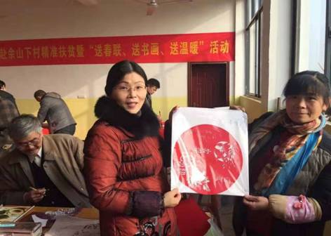 金丽娟老师参加精准扶贫暨 “送春联、送书画、送剪纸”下乡活动