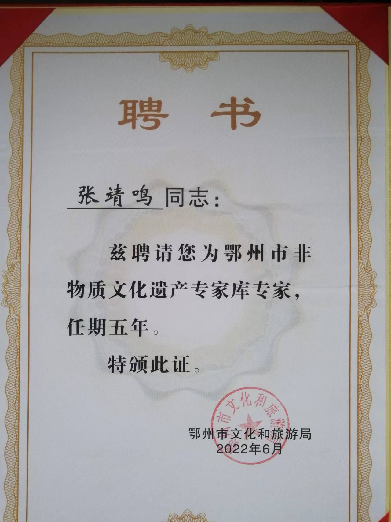 张靖鸣副教授入选鄂州市非遗保护专家库名单