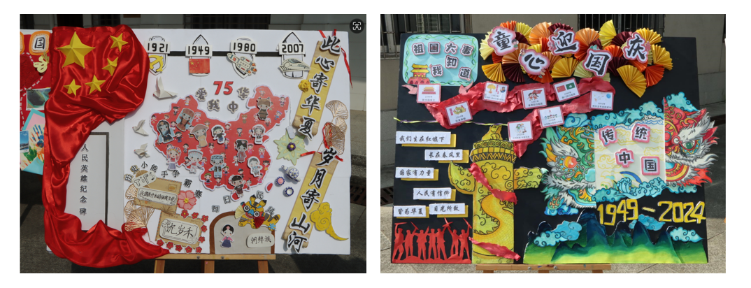 (供稿人:茅芮)2024年10月1日,为庆祝中华人民共和国成立75周年,弘扬爱国主义精神,传承中华优秀传统文化。鄂州职业大学教育管理学院雕花剪纸工作室教师带领2022级学前教育专业本科班学生,在教育管理学院2号楼前开展了以“七十五载辉煌路,共创中华新篇章”为主题的系列手工活动作品展。