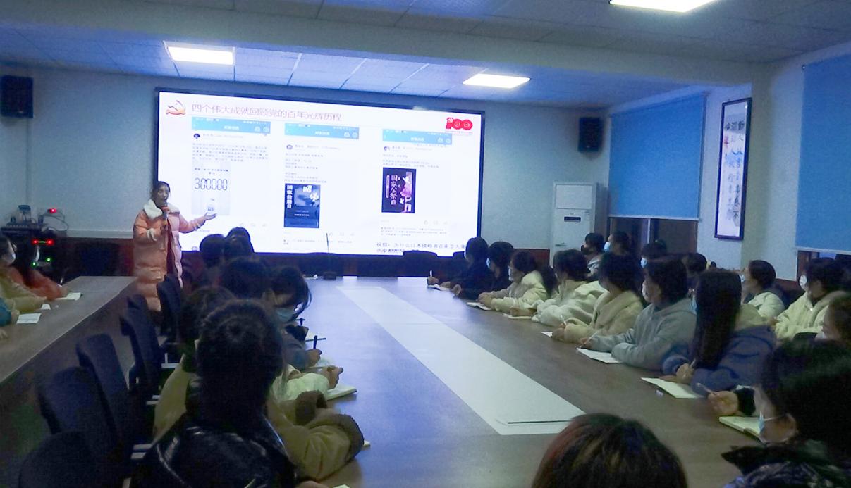 【何青 赵艺供稿】为学深悟透习近平总书记“七一”重要讲话,进一步激发学生党员推动新时代追赶超越、全面建成社会主义现代化强国的信心和力量。2021年12月14日晚,鄂州职业大学教育与管理学院学生二支部书记、“灯塔”班主任工作室创始成员何青老师在2号教学楼举办了题为《请党放心 ,强国有我》的理论宣讲活动,教育与管理学院学生二支部26名学生党员,25名入党积极分子参加了此次活动。