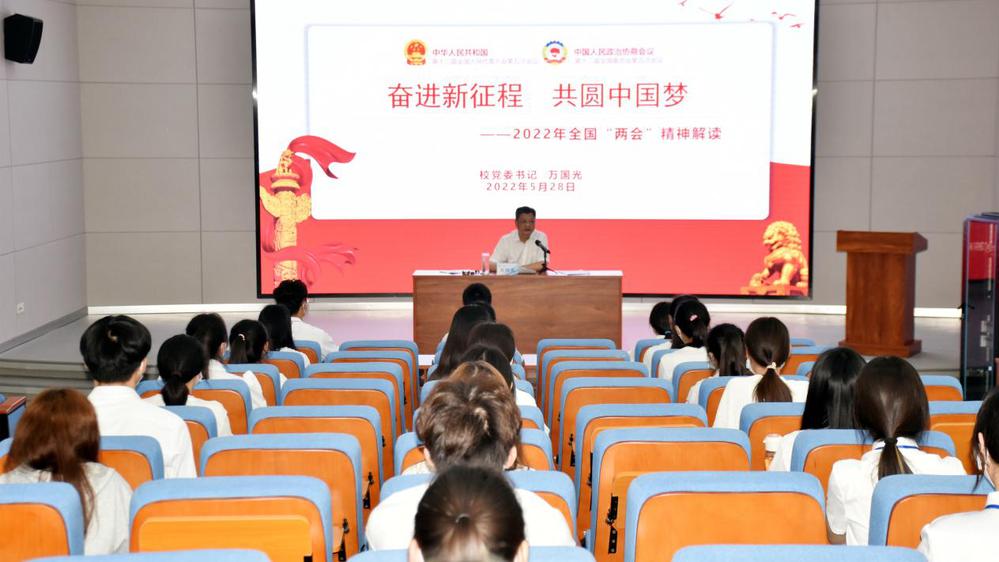 万国光从2022年全国“两会”会议概况、2022年《政府工作报告》解读、2022年全国“两会”热词三方面详细解读“两会”精神,并以提问的形式激发学生积极思考,利用现实中的生动案例及学生身边的故事分析问题,引导师生深刻地领会今年“两会”的思想精髓。