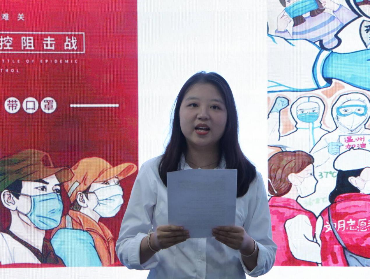 本次活动由“灯塔”名班主任工作室指导,“青言青声”宣讲团成员谭兰芳、赵媛、赵丁黎、陈姿颖四位同学担任主讲人。他们以真挚的情感和生动的表现形式,带领师生共同回顾校园抗疫中的感人故事与精神力量,展现了新时代青年在关键时刻的责任担当与青春风采。