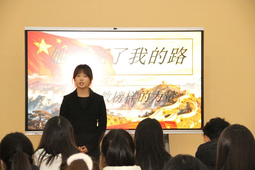 来自教育管理学院学生党支部的入党积极分子们登台讲述那些照亮他们职业选择的“他/她”——有扎根乡村幼教一线的学姐,用十年坚守诠释“静待花开”的耐心;有在小学课堂默默耕耘的学长,将热爱化为日复一日的陪伴;更有高中恩师在至亲离世当日仍强忍悲痛站上讲台,用颤抖却坚定的声音传递知识……这些真实而动人的故事,让“教师”二字不再抽象,而是具象为责任、奉献与温柔的力量。