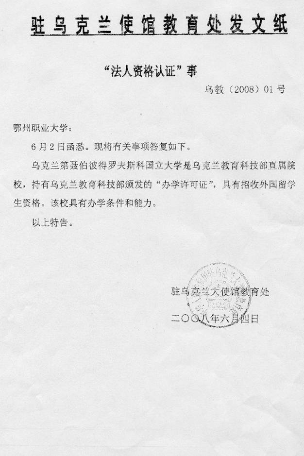 中国湖北鄂州职业大学与乌克兰第聂伯彼德罗夫斯克大学联合办学是经湖北省教育厅正式批准的、颁发中乌两国双文凭的高等教育联合办学项目(鄂教外〔2008〕17号)。该项目旨在通过引进乌克兰高等教育的优质资源,与中国优秀高等教育资源相结合,在中国本土上培养学贯中西的国际性复合型人才,以提高我国人才在经济全球化趋势下的竞争优势。