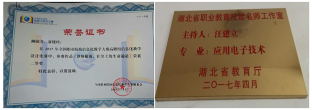 夏晓玲老师荣获2017年全国职业院校信息化教学大赛二等奖及2017年湖北省职业院校信息化教学大赛二等奖。
