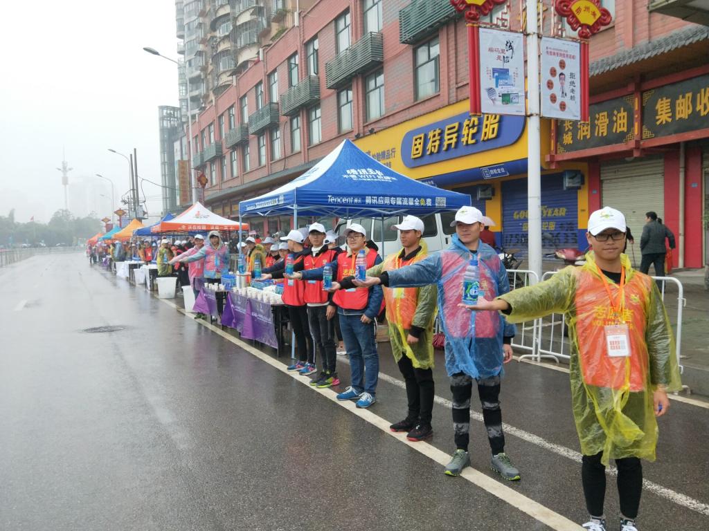 上午8点30分,刚起跑便下起了雨,虽然奔跑的过程中雨越下越大,但没有浇熄参赛者的热情,也没有阻碍他们奔跑的脚步。而赛场外的沿线路段上开展着各式各样的热场节目,为马拉松运动员们助威打气。