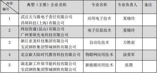 表 1:电子电气工程学院2018 年各专业校企合作(典型企业)表