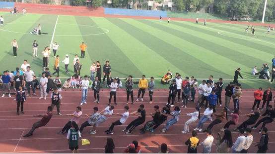 2019年10月17日星期四下午3点,我校在西区体育场举行拔河比赛,现场各院参赛人员已于2.30分在此集结,等候参加比赛。现场人声鼎沸,各院系的观赛人员也在观众席上呐喊助威。