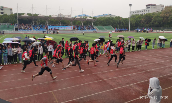 连续几天的大太阳迎来了阴雨绵绵的一天,但这小小的阻碍丝毫不会影响运动会的举行,2019年10月25日鄂州职业大学运动会在西区操场顺利举行。