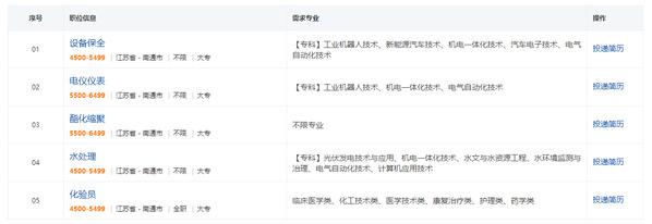 保全工 | 大专以上 | 30 | 机电一体化、机械设计与制造、机电设备维修与管理、数控技术、模具制造、汽车检测与维修技术 | 负责部门辖区内相关设备和机台的安装、调试、日常维护维修等工作 | 4200-6000 |