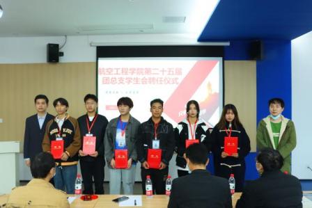 2022年11月25日下午,航空工程学院第二十五届团总支学生会聘任仪式在三号楼创新创业中心圆满举行。本次聘任仪式由学院团总支书记(代理)万前锋主持,学院党总支副书记叶惠君、学院办公室主任李友梅、教研室主任李昶、辅导员黄明、辅导员高铭远参加。参加仪式的嘉宾有校级学生组织和其他学院学生会主要负责人。