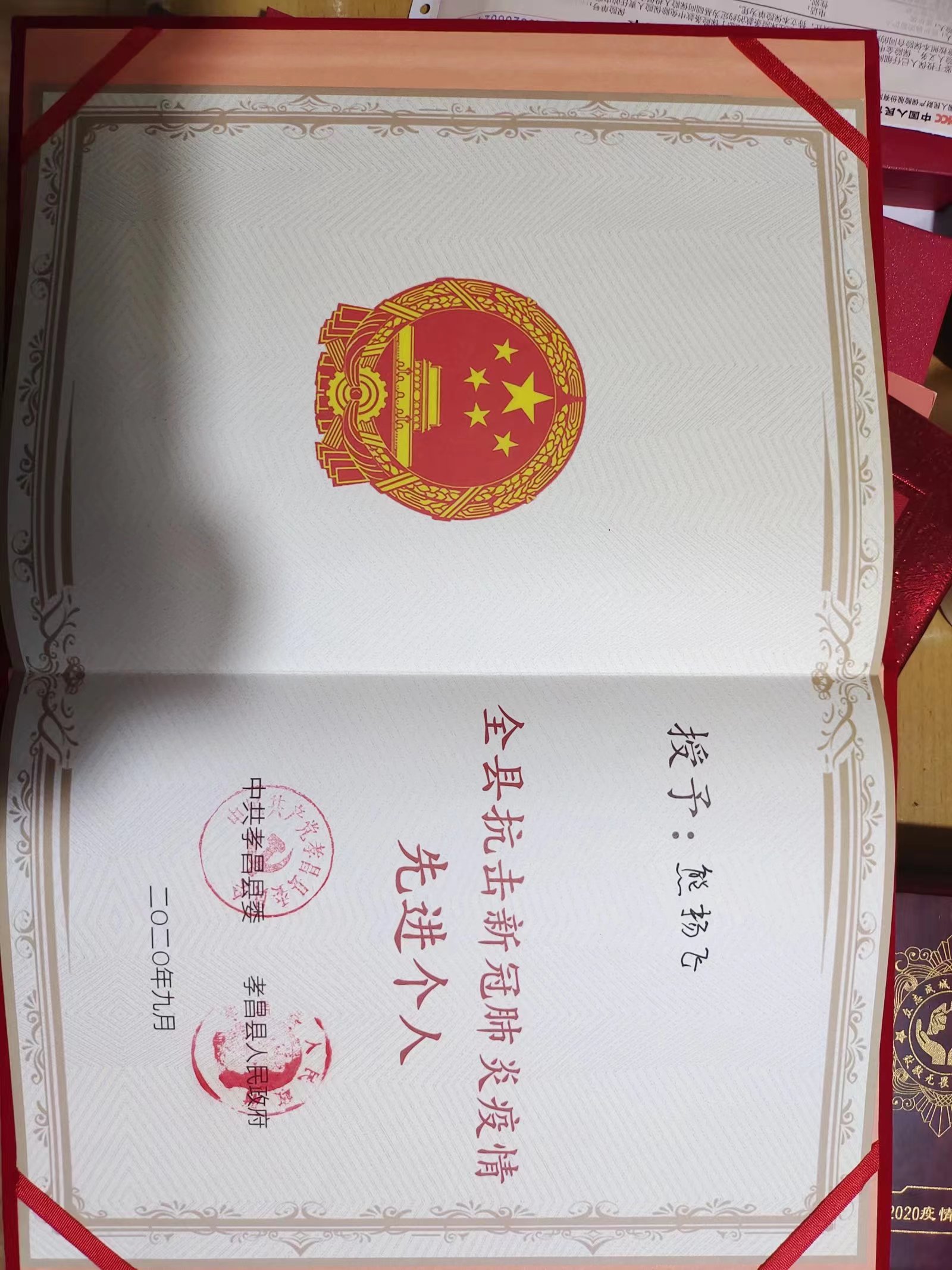 熊扬飞同学早在2020年就因积极参与疫情防控志愿服务活动,被评为孝昌县抗击新冠肺炎疫情先进个人。多年来,只要是节假日回到家,他都会第一时间到村两委“报到”,积极主动参与到各项疫情防控工作中。