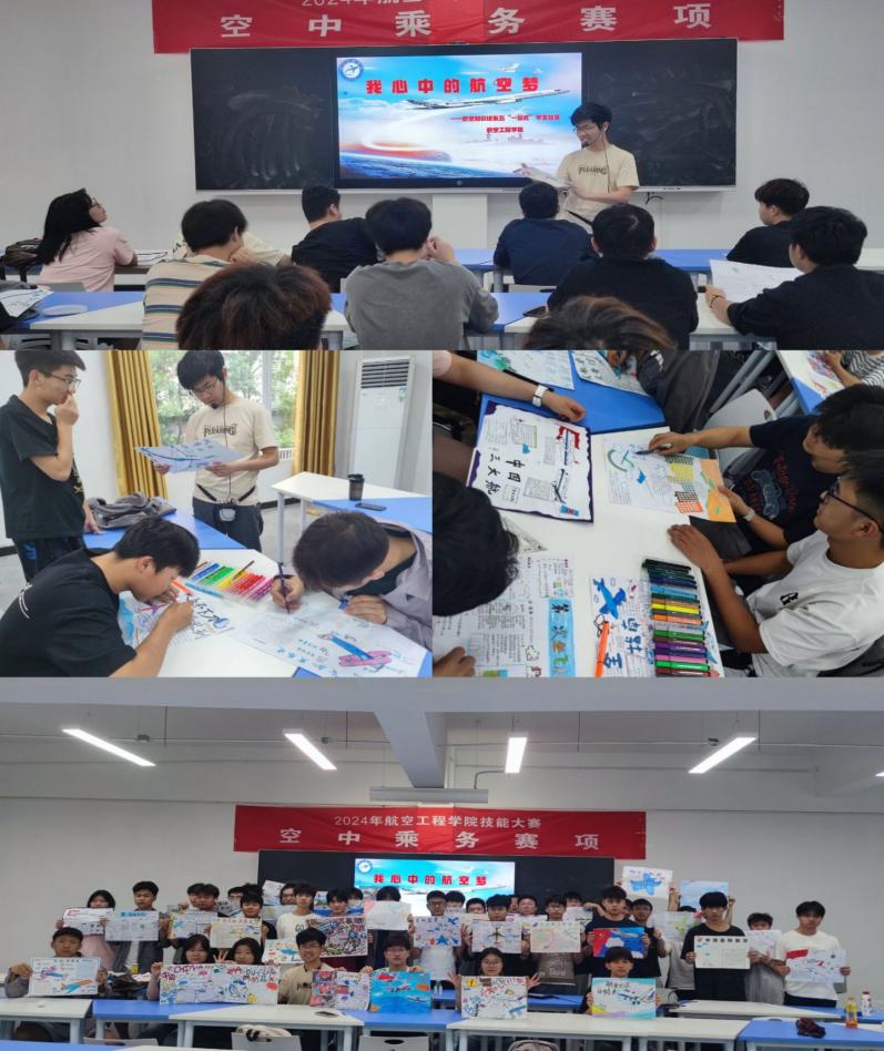 (通讯员 高若瑜)2024年5月21日,我院在航空工程实训基地开展了一场以“我心中的航空梦”为主题的航空知识科普活动。苏汉平老师向同学们介绍了航空知识,同学们将自己心中的航空梦、对航空的了解,以手抄报的形式进行了展示。通过本次活动,同学们对航空知识有了更加全面的认识,对航空事业的热爱更加深厚。东五栋“一站式”学生社区学生自律委员会成员和学生代表40余人参加了此次活动。