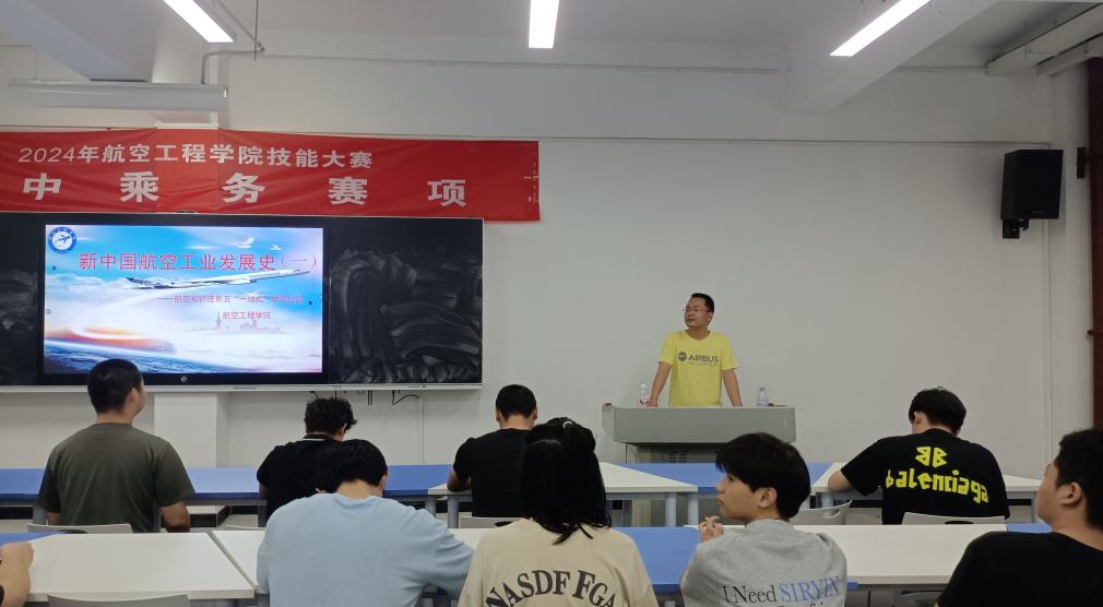 (通讯员高若瑜/苏媛心2024528,一场主题为“新中国航空工业发展史”的系列讲座在航空工程实训基地开讲。学院航空专业教师朱智斌向同学们详细介绍了新中国航空工业的创业史,创业者高涨的爱国情怀和创新精神深深激励了同学们,也让同学们对相关航空知识有了深入的了解
