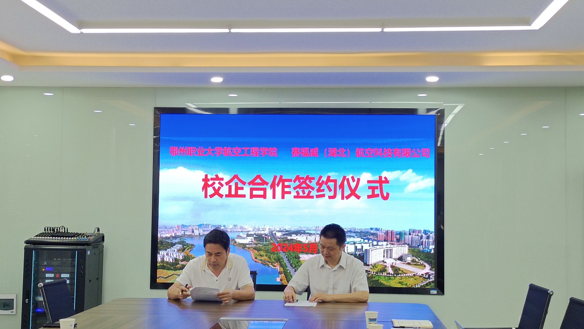 (通讯员万前锋)5月23日上午,赛福威(湖北)航空科技有限公司项目负责人姜宏勇等一行五人到航空工程学院考察交流,洽谈合作事宜,举行人才培养基地授牌仪式。学院与赛福威公司就学生实习实训、就业、人才培养等进行深入交流,院长郑敏代表学院与对方签订校企合作协议。
