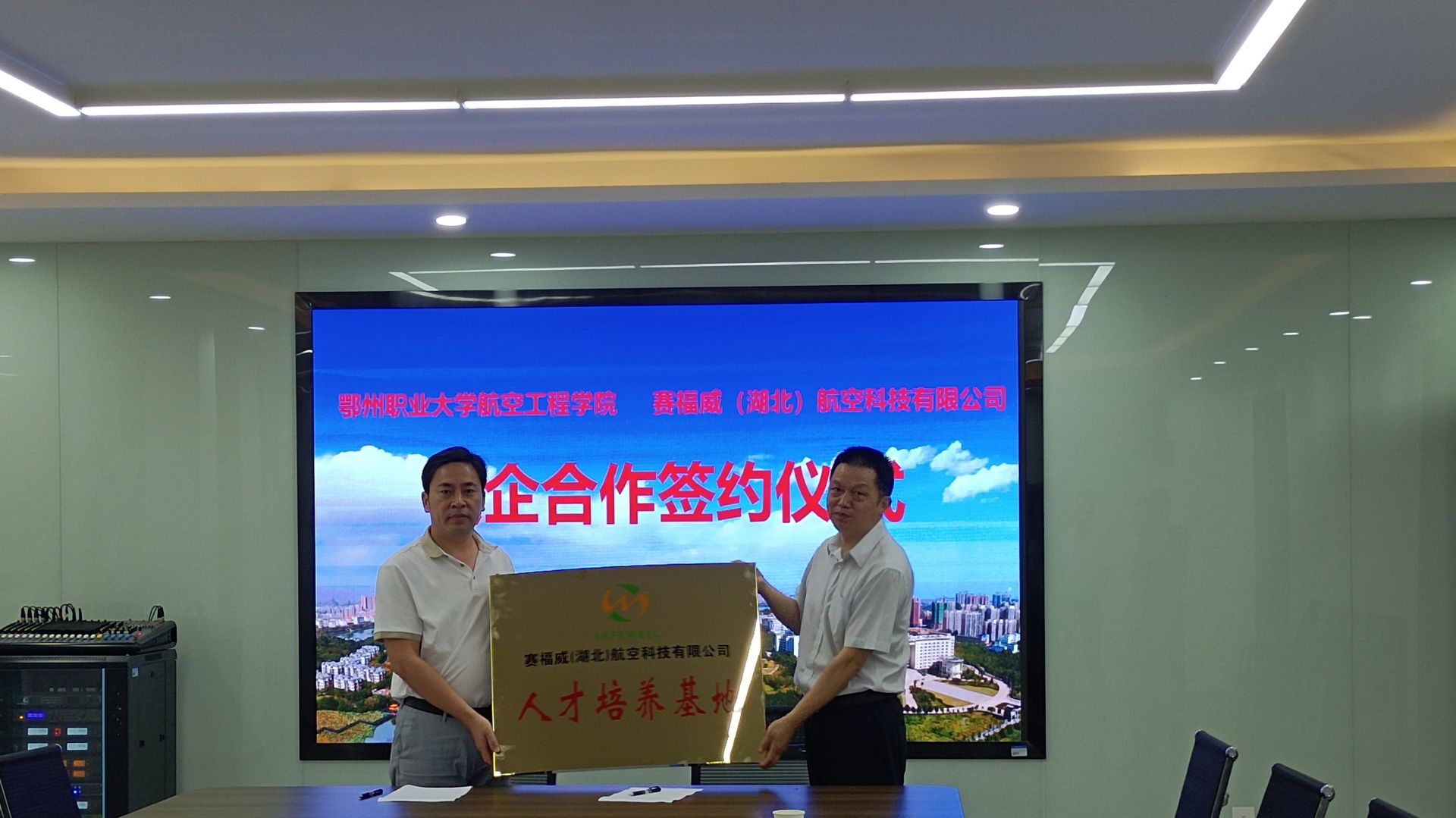 (通讯员万前锋)5月23日上午,赛福威(湖北)航空科技有限公司项目负责人姜宏勇等一行五人到航空工程学院考察交流,洽谈合作事宜,举行人才培养基地授牌仪式。学院与赛福威公司就学生实习实训、就业、人才培养等进行深入交流,院长郑敏代表学院与对方签订校企合作协议。