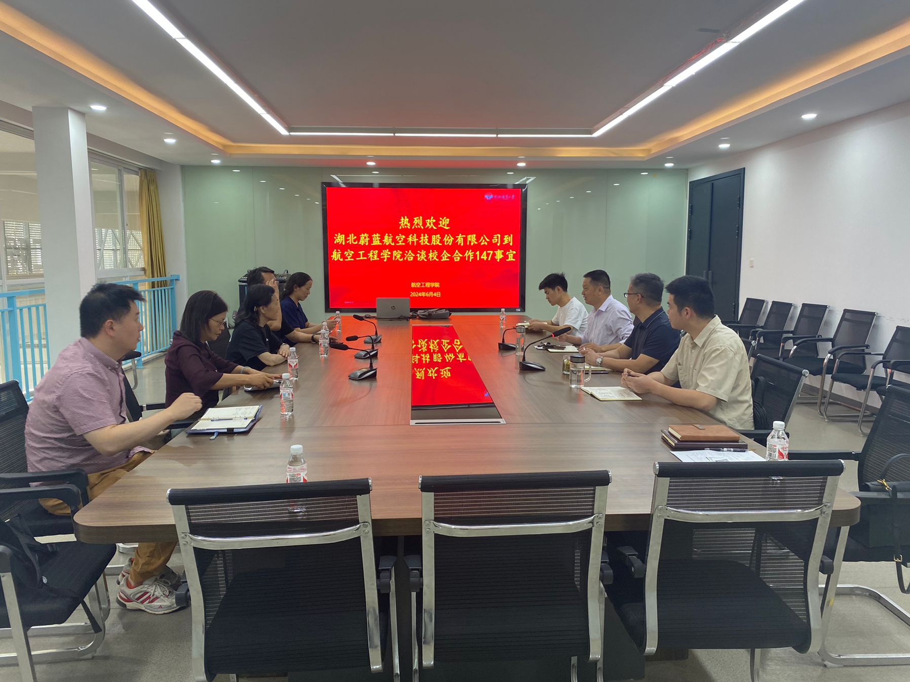(通讯员 万前锋)6月24日上午,蔚蓝航空科技股份有限公司副总经理李方林等一行5人来我院洽谈校企合作事宜,院长郑敏、党总支书记李玮及相关负责人参加会议。校企双方就联合人才培养、CCAR-147航空维修培训、学生实习实训等深入交流并对成立蔚蓝航空产业学院达成共识。