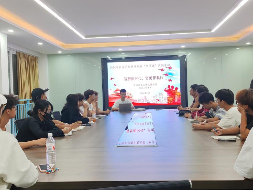 (通讯员:高若瑜 张诗悦)2024109航空工程学院依托东五“一站式”学生社区在航空工程学院实践基地会议室开展国家资助宣传教育活动。航空工程学院资助宣传大使王旭和学生代表参加了本次活动。