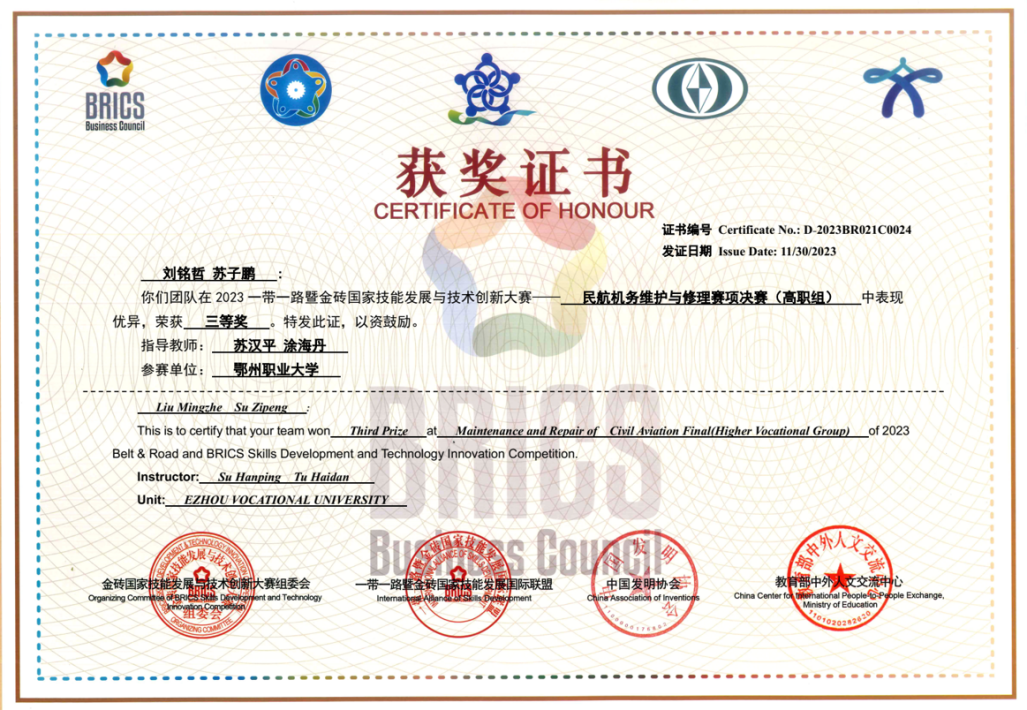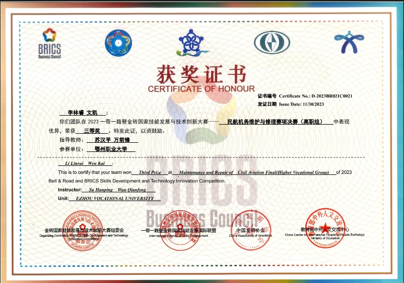 2023年一带一路暨金砖国家技能发展与技术创新大赛获三等奖2项
