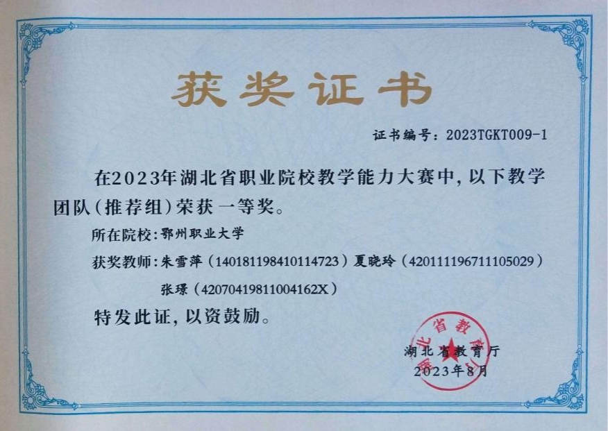 湖北省职业院校教学能力大赛一等奖