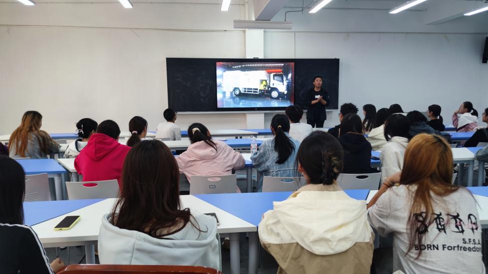 活动中,李帅帅老师通过生动地讲解与学生积极互动,图文并茂地展示了各种机场特种车辆的介绍,向同学们深入讲解了车辆种类、功能及工作原理。