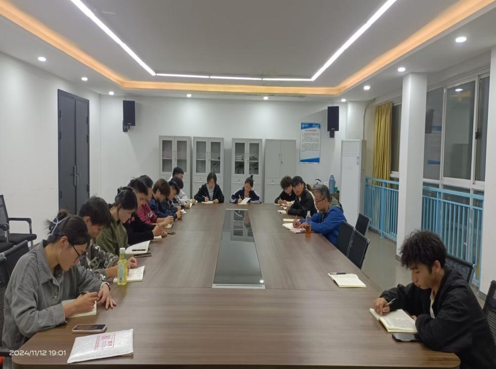 20241112日晚七点,东五一站式学生社区读书班在航空工程实训基地二楼会议室进行了第二次集中学习集中学习由院党总支书记李玮主持。