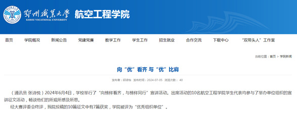 2024年“向榜样看齐,与榜样同行”宣讲活动,学院被评为“优秀组织单位”。