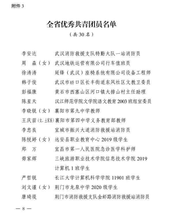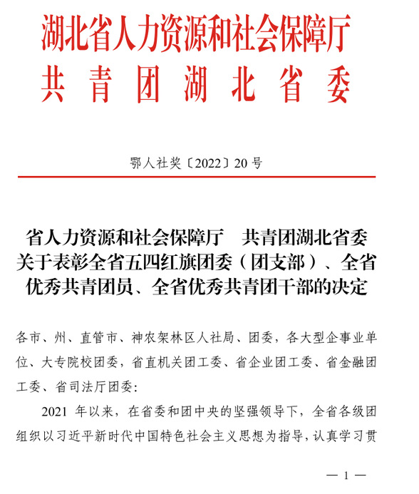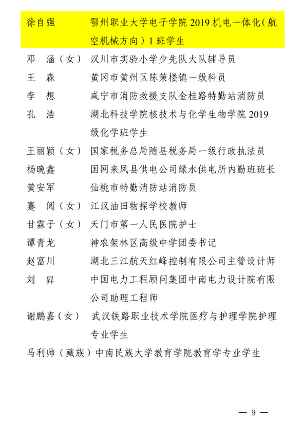 2019级学生徐自强获得2022年湖北省“优秀共青团干部”表彰