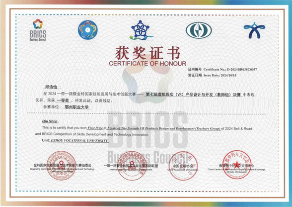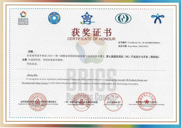 2024一带一路暨金砖国家技能发展与技术创新大赛教师组一等奖、优秀指导教师