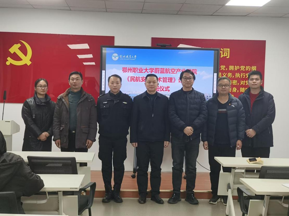 (通讯员涂海丹)2024年12月11日,鄂州职业大学蔚蓝航空产业学院民航安全技术管理订单班开班仪式第一期民航安检员培训班在学院二楼党员活动室举行开班仪式。航空工程学院郑敏院长、李玮书记,蔚蓝航空有限公司业务总经理余亚锋、民航安检教员张恒、培训班全体学员参加了开班仪式。