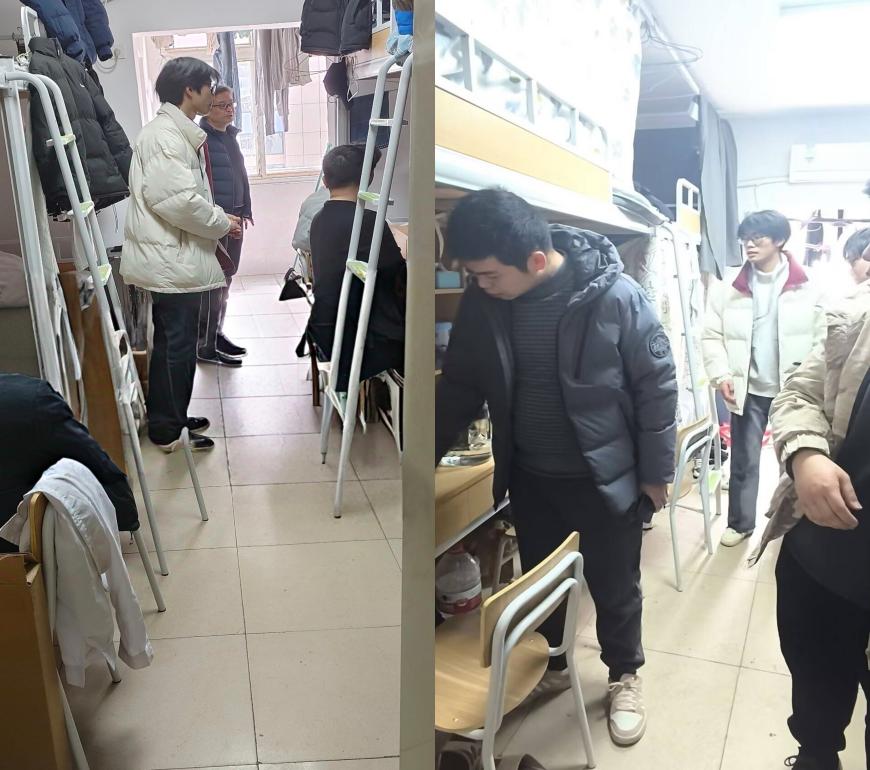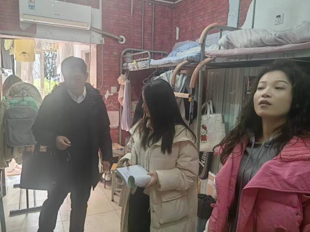 在走访过程中,老师们亲切地与学生交流,询问假期生活和新学期的规划,对学生们表达了关怀与期望;同时对寝室进行了全面细致的安全排查,重点检查违规电器使用、门窗损坏等问题,对发现的安全隐患逐一记录,并安排专人跟进整改。