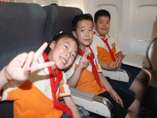 最后,在志愿者引导下,同学们有序登上教学用大飞机,化身“小乘客”。学院的讲解员现场演示了安全带调节、救生衣等机上安全设备的操作方法。小朋友们们好奇地触摸舷窗、操作座椅调节按钮,沉浸式感受航空出行的奥秘。