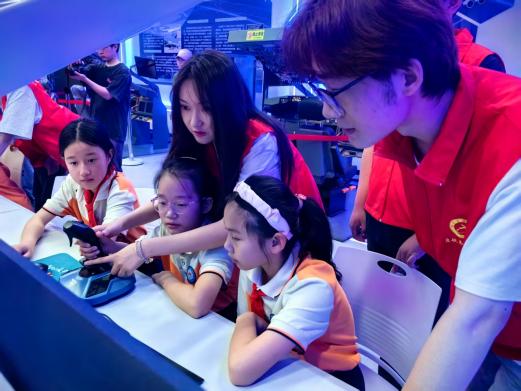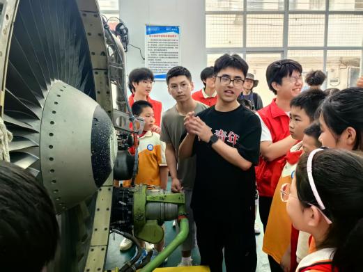 活动伊始,鄂州职业大学航空工程学院的志愿者们带领小朋友们参观并体验了实训中心内的各类航空发动机、民航安检设施以及模拟飞行器。在参观和体验的过程中,志愿者们化身为“科普讲解员”,用通俗易懂的语言向小朋友们介绍中国航空发展史、飞机结构与原理、航空发动机相关知识。一个个新奇的航空知识让小朋友们流连忘返,不断提出各种问题,现场互动氛围热烈。