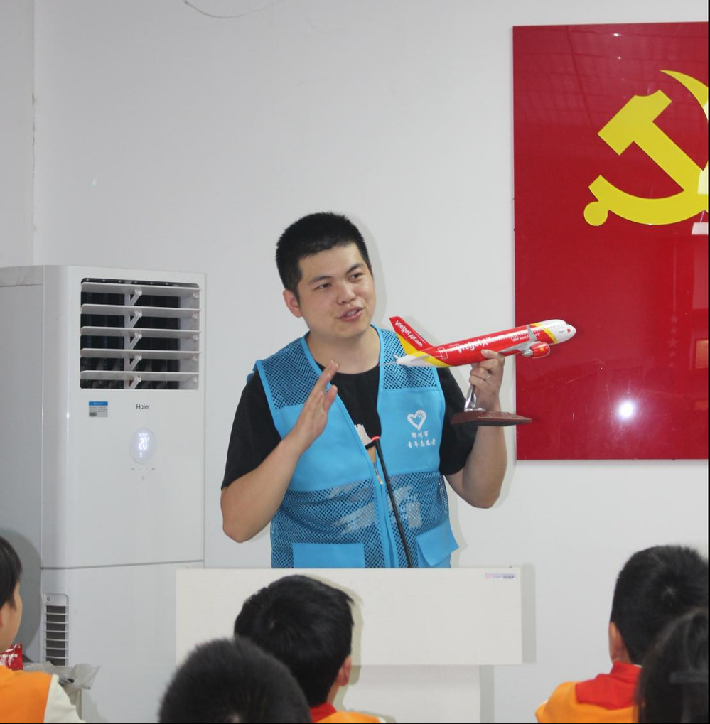 随后,学院团总支书记开展了一场生动有趣的“中国梦·航空梦”航空科普讲座。讲座上,从中国梦与航空梦的使命到中国航空梦的开端,从飞机的起源到现代飞机的发展,从飞机的分类到飞行原理,一系列丰富的知识深深吸引着小朋友们。小朋友们积极举手发言,与老师进行互动。现场掌声雷动,笑声不停。