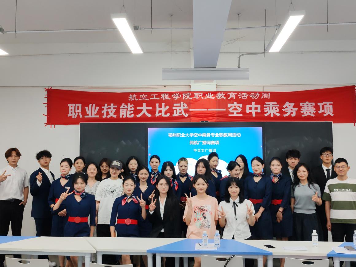 (通讯员:邱诗怡)5月15日下午,航空工程学院空中乘务专业举行“秀专业技能,展职教魅力”职教周空乘职业技能大赛。