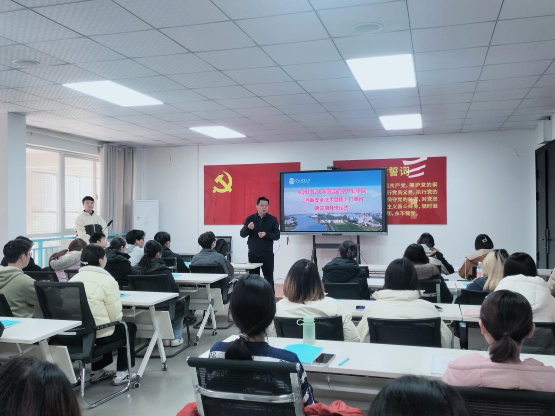 (通讯员 涂海丹)2025年 12 月 1日,鄂州职业大学蔚蓝航空产业学院民航安全技术管理专业订单班第三期正式开班,本期29名学员将在襄阳机场教员的带领下开展为期2周的校内安检培训,明年3月前往襄阳机场开展为期2周的实操培训,帮助学生将理论知识与实际操作相结合。