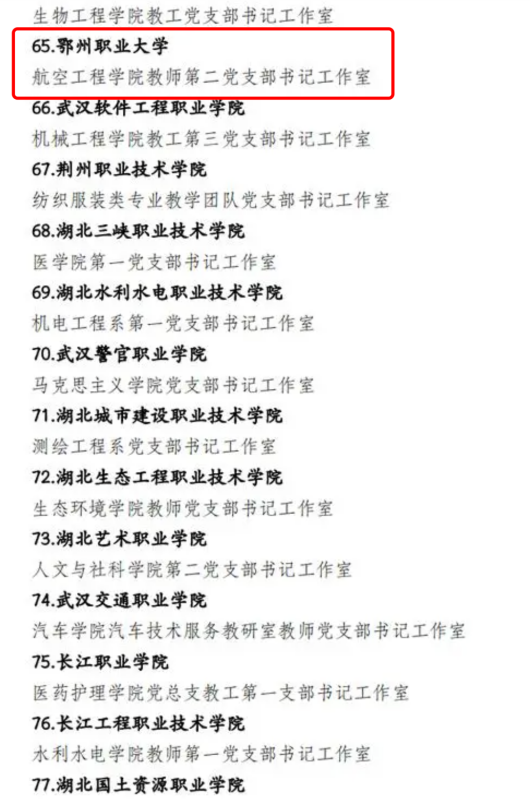 航空工程学院教师第二党支部是鄂州职业大学先进基层党组织。该支部包括航空工程学院一线教师和行政人员,设有支部书记、组织委员、宣传委员、纪检委员等职务,负责党支部的日常工作。发挥教育党员、管理党员、监督党员、组织师生、宣传师生、凝聚师生、服务师生的作用,确保党的教育方针和政策得到贯彻执行。