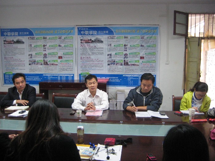 2012年10月17日下午3点,在2号教学楼1楼会议室举行中职学院全体教师大会,会议由院长张刚民主持,副书记、副校长洪贞银、中职学院党总支书记洪辉、副书记苏海元、副院长陈志平、副院长陈艳以及中职中技全体干部教师参加了本次会议。