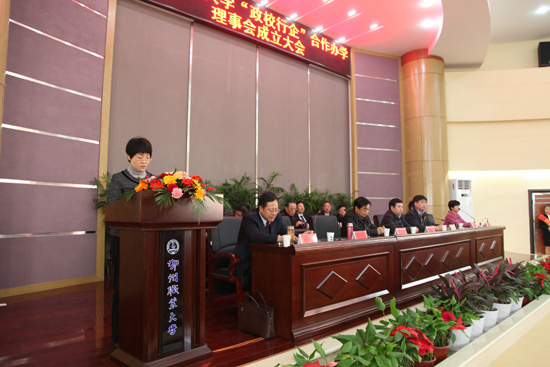 市长韩进发来贺信表示祝贺。他希望理事会能始终围绕服务地方经济社会发展需要,坚持培养高端技能型人才目标,充分发挥政校行企四方资源,努力实现“合作办学,合作育人,合作就业,合作发展”,为地方经济社会发展做出更大贡献。